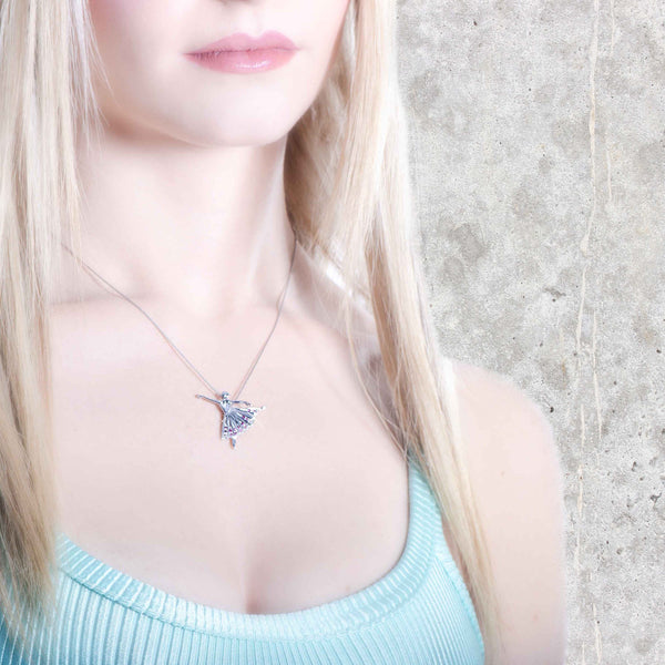 Gioiello danza, ciondolo pendente,Arabesque Etudes In argento 925 bagnato oro bianco.